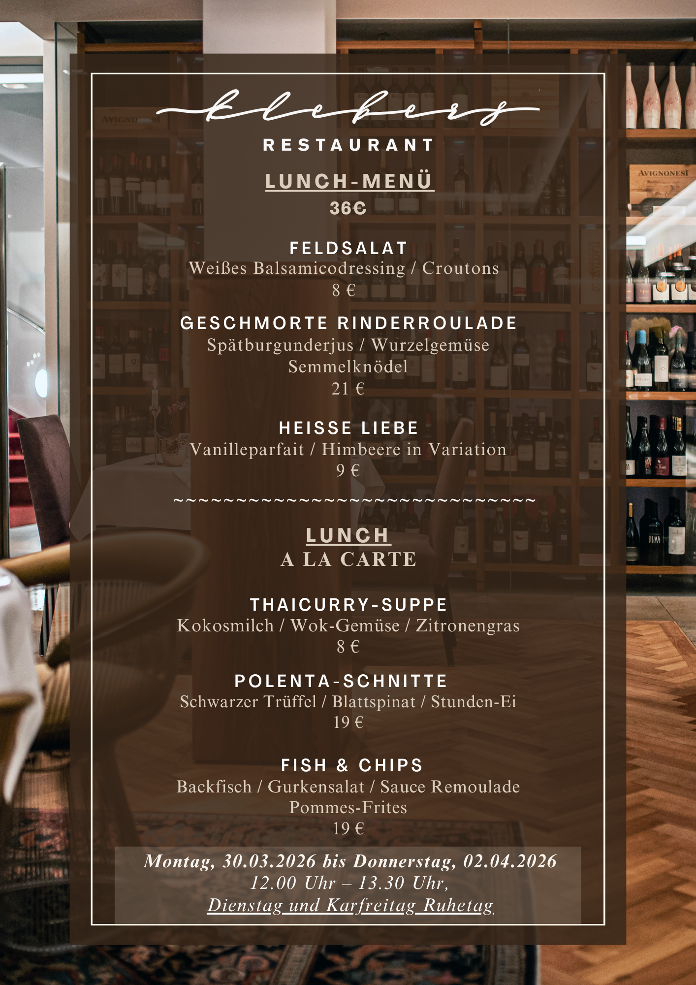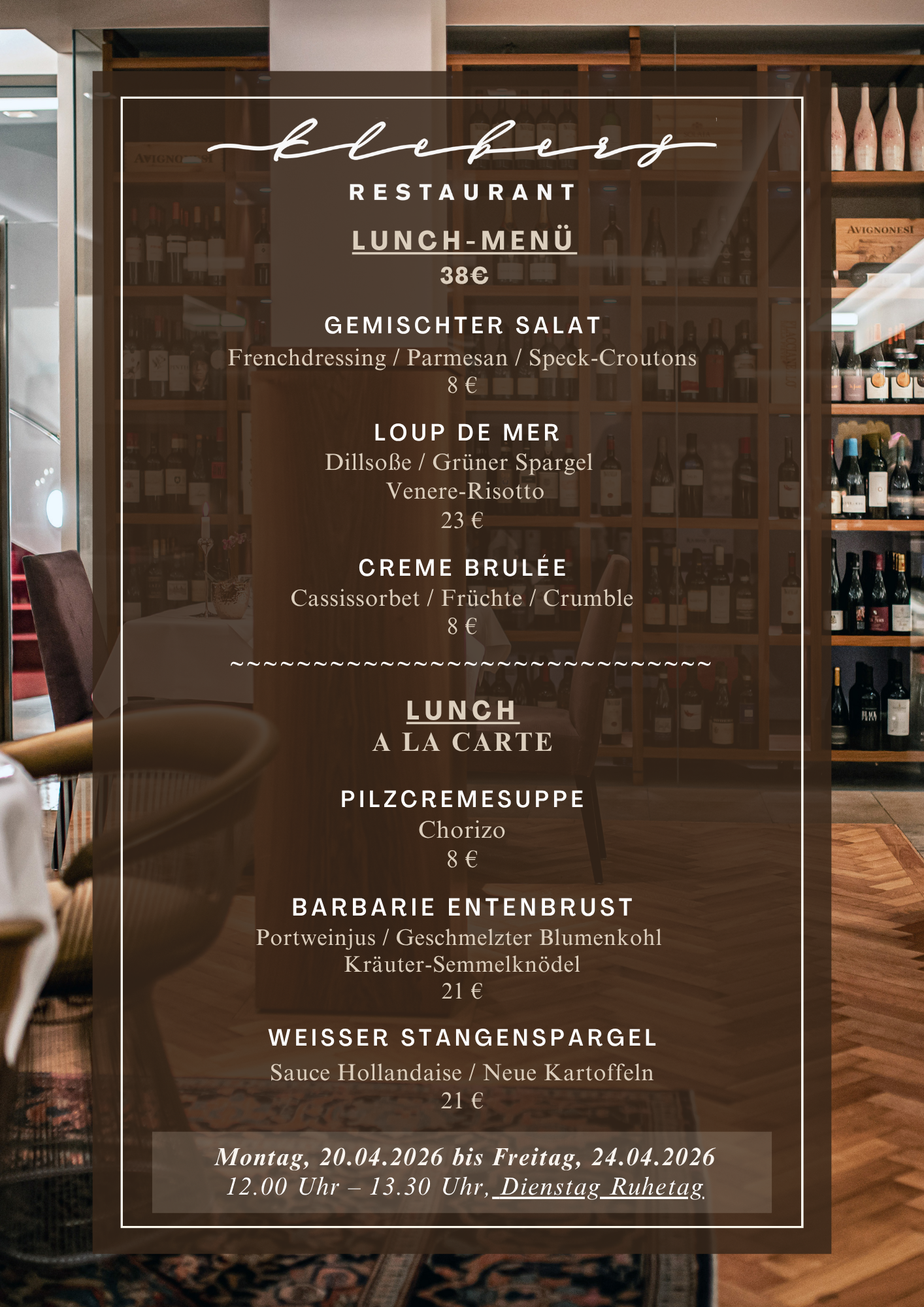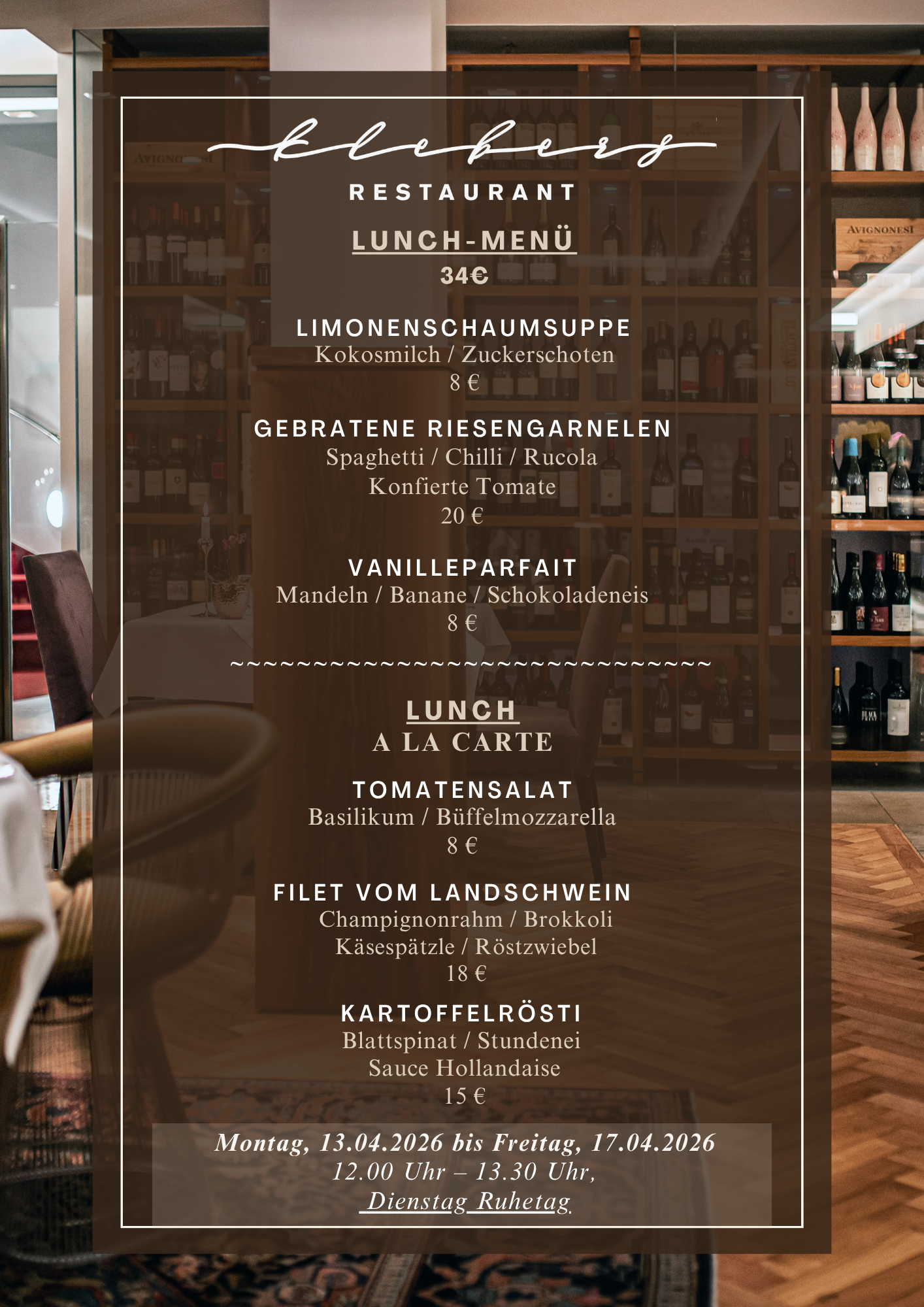 Erleben Sie einen besonderen Lunch-Moment mit unserem wöchentlich wechselnden Mittagsmenü.